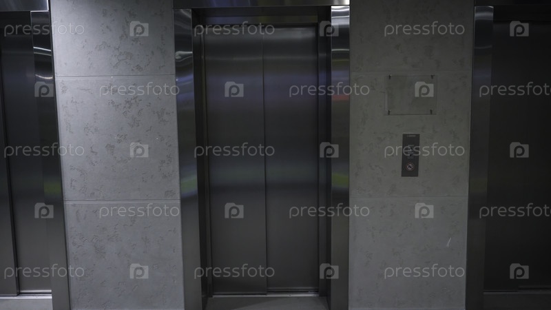Современный лифт в здании. Лифт в офисном доме. Дверь к лифту закрыта на первом этаже
