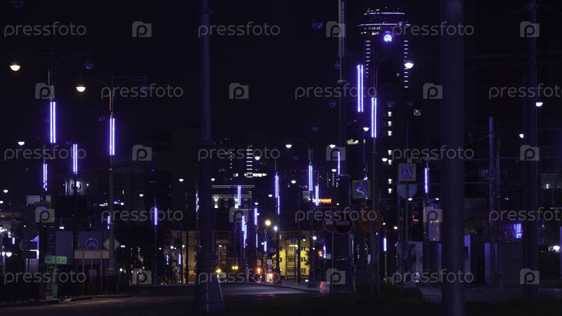 Неонные огни на огне ночного города. резервная запись. Ночная трасса современного города оснащена красивыми неоновыми огнями, как в городе будущего