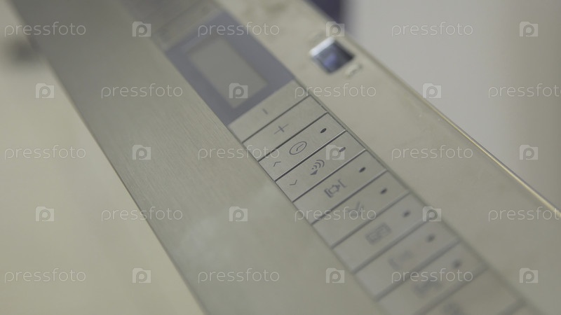 Закрытие клавиатуры печи. Бытовая техника. Стильный современный дизайн панели печи со встроенными кнопками. Встроенные кнопки с различными режимами приготовления пищи на духовке