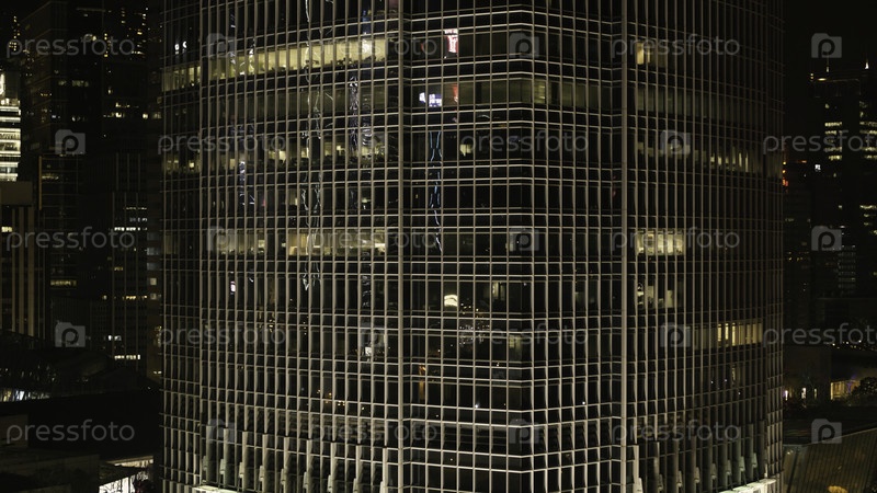 Вид на небоскребы в большом городе ночью.Сток.Отличный вид на город ночью