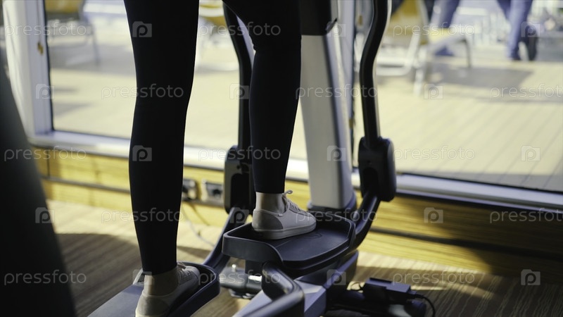 Спортсменка делает эллипсоид в тренажерном зале