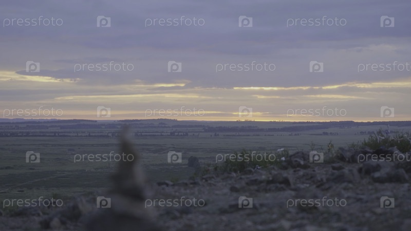 Песчаные камни Зенская башня и баланс. кучка камней против неба. каменная башня на фоне поля и утреннего неба