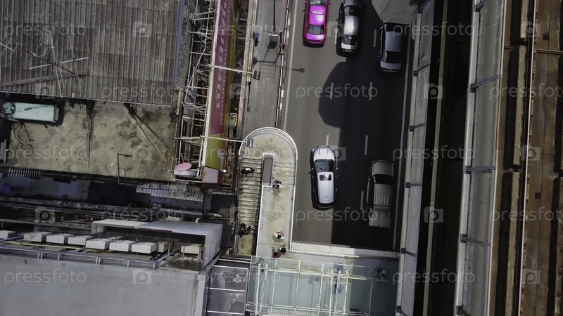 Вид на мост и рельсы. ландшафтное строительство современного делового района Бангкока. X-образная скоростная дорога, небесная железная дорога в переднем плане