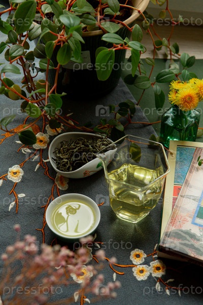 Почувствуйте спокойные моменты чая с зеленым чаем, наполненным красивыми сочными растениями
