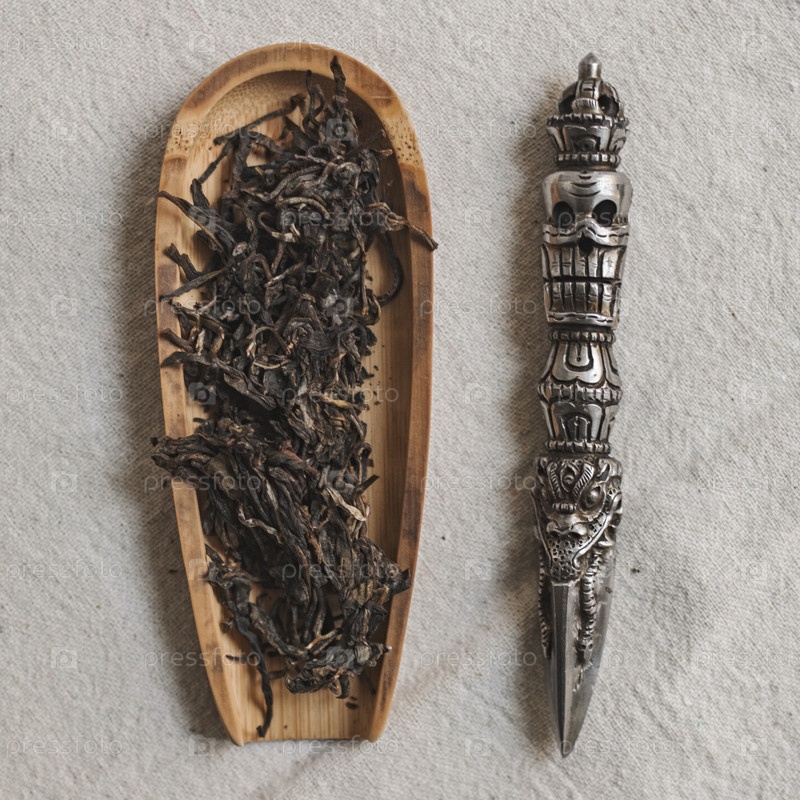 Художественное и творческое устройство сушеных чайных листьев вместе с декоративным инструментом, предназначенным для приготовления чая