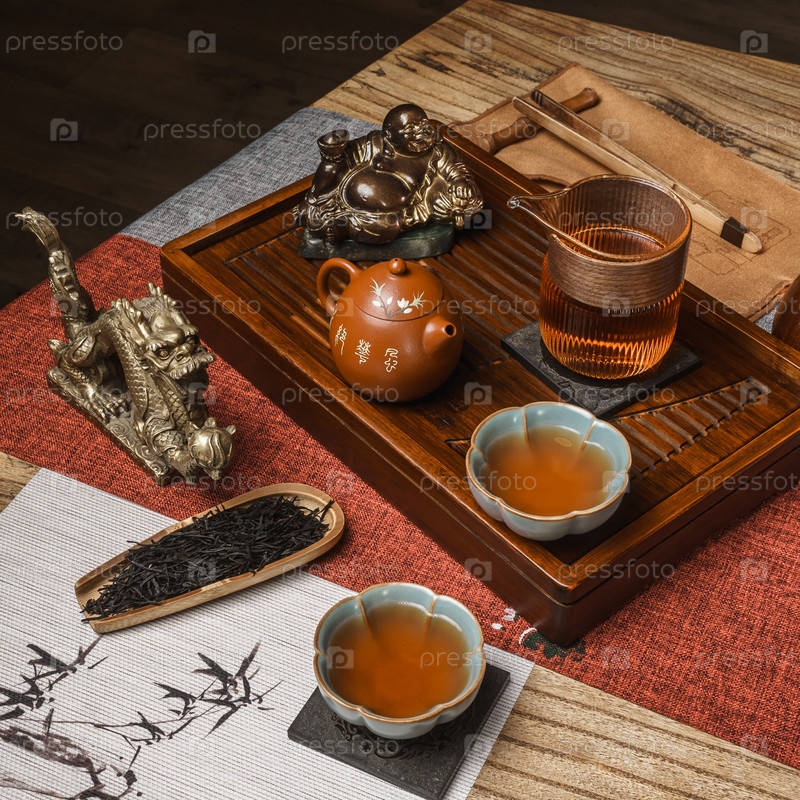 Очаровательная чайная конфигурация с восхитительным чайником и привлекательными чашками создает успокаивающий и приятный опыт