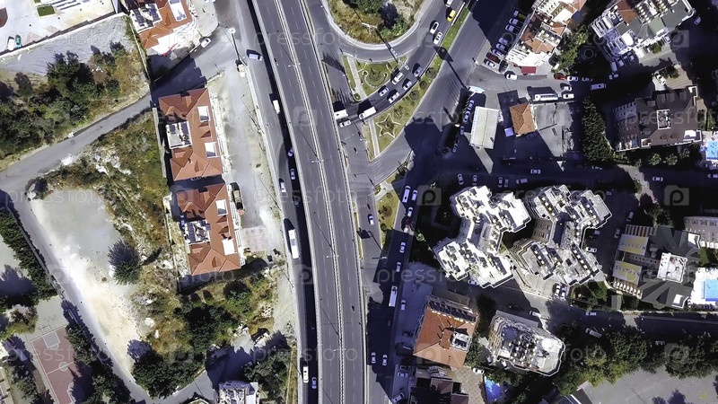 Вид на курортный город на горном побережье недалеко от голубого моря. Клип. Красивая панорама города, расположенного на берегу моря. Вид на город с морского горизонта