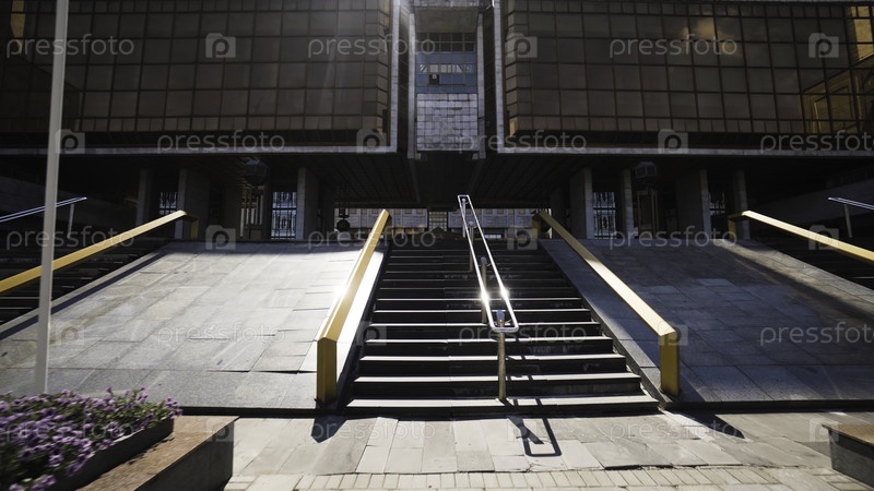 Здание РАН в Москве. Идите дальше. Нижний вид необычной архитектуры советского модернизма. Комплекс зданий Президиума Российской академии наук. Красивые архитектурные достопримечательности Москвы