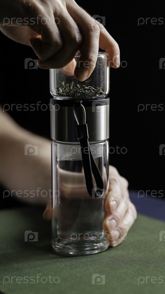 Ручно умело используя современную острую мельничную машину над стеклянным контейнером, демонстрируя искусство кулинарного творчества