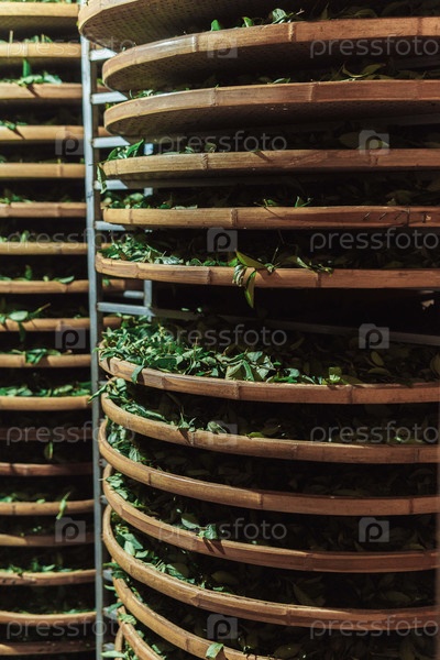 Традиционный процесс сушки зеленых листьев использует бамбуковые нити для улучшения вкуса и качества