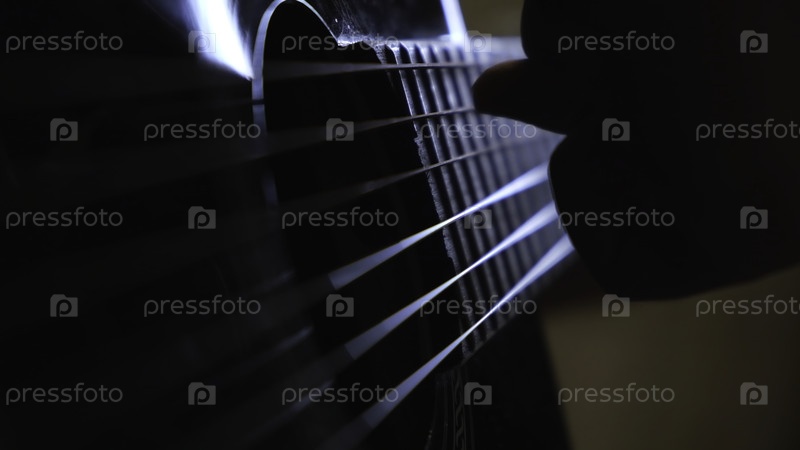 Руки мужчины играют на черной акустической гитаре Концепция.Концепция уроков музыки