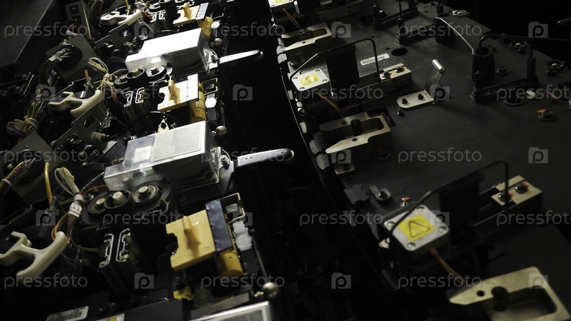 Закрытие сложных механизмов машины на фабрике. деталей электростанции, опускающая машина отделяет свои элементы