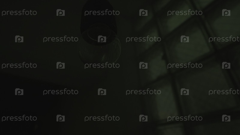 Лампочка без лампы висит на потолке в темноте.Светление старого и мрачного цветными огнями на стене, концепция вечеринки