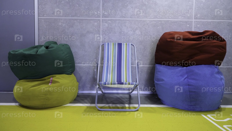 Место, где рождаются идеи.Красочные пакетики с бобами.Местность в офисе