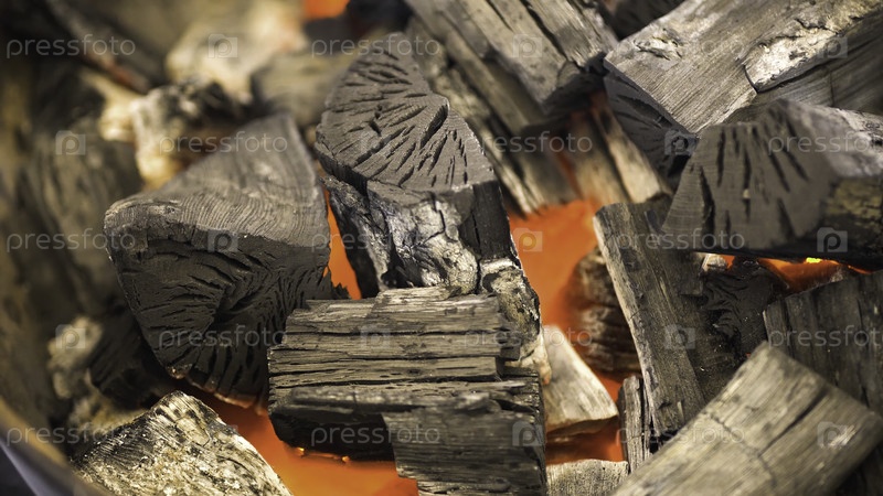 Покрывайте BBQ уголь пламенем и светящимся