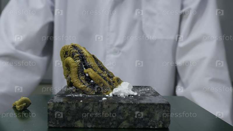 Химик или медицинский ученый добавляет огонь в насильственную химическую реакцию