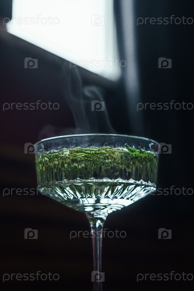 Элегантное стекло, наполненное вкусной травяной настойкой и очаровательным подъёмом пара