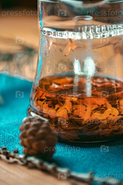 Успокаивающая инфузия теплого чая, окруженная различными природными элементами, идеально подходит для максимального расслабления