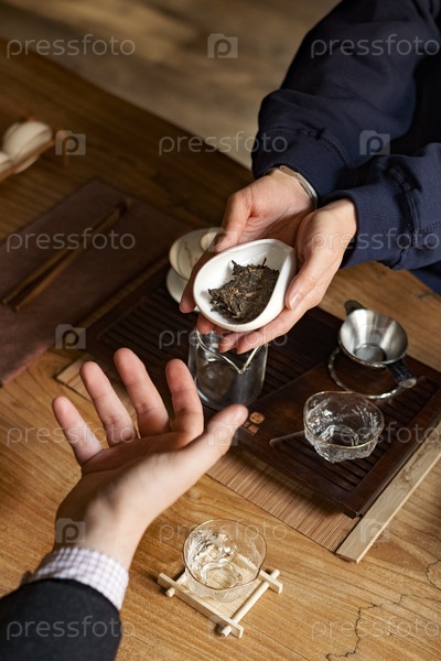 Спокойный момент приготовления чая, прекрасно демонстрирующий искусство делиться и наслаждаться бесплатными чайными листьями