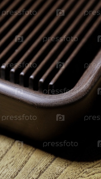 Близкий взгляд на стильную деревянную доску для подачи блюд с глубокими канавками идеально подходит для презентации еды
