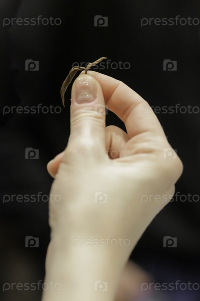 Рука аккуратно держит небольшой, сложный объект и с большой тщательностью демонстрирует его тонкие детали и уникальные текстуры