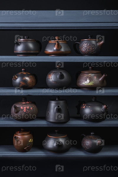 Это потрясающее расположение уникально спроектированных чайников, которые демонстрируют изысканное мастерство и художественный дизайн