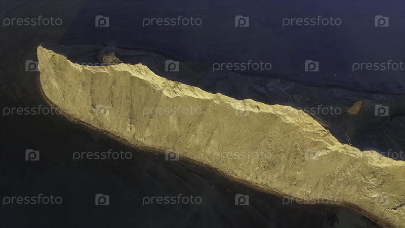 Вид с воздуха на остров.Снимай.Это красивый песчаный остров.Океан, небо, море