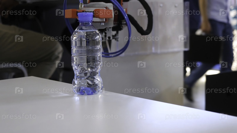 Рука робота держит бутылку с водой СМИ Технологический прогресс Робот держит бутылку с водой