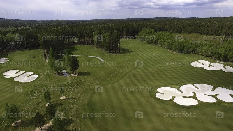 Вид сверху - зеленое поле для гольфа на открытом поле из зелёной травы