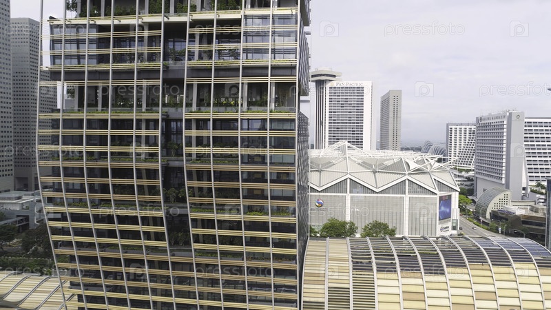 Сингапурский горизонт.Снимать.Вид на небоскреб в Сингапуре.Современные небоскребы из китайского квартала