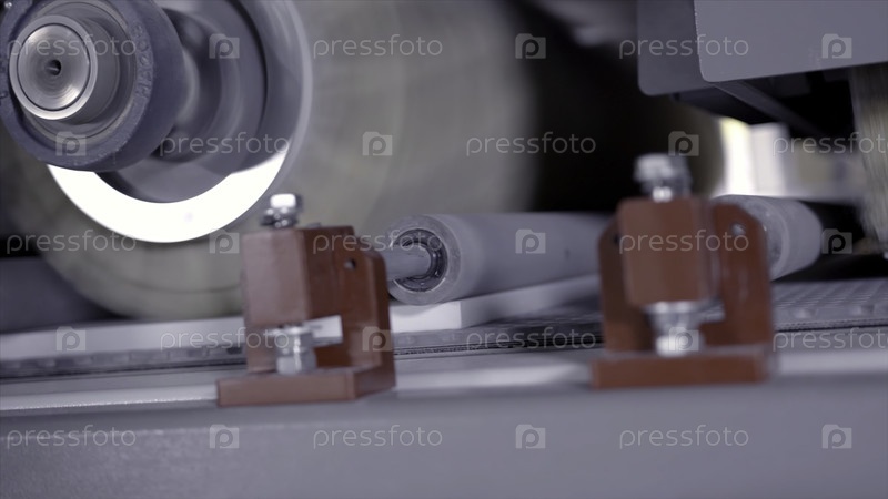 Закрытие автоматической машины с кистями. Продолжайте. Поворачивание автоматических кистей на производственной машине предприятия. Промышленная машина с кистями для покраски или чистки