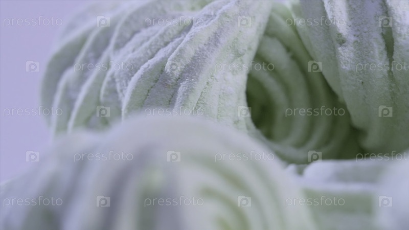пышный белый зефирь в голубой круглой таре на старом деревянном столе с закрытым копировальным пространством. закройте много пушистых сладких круглых зефиров на белом блюде. на заднем плане Полк. боковой вид