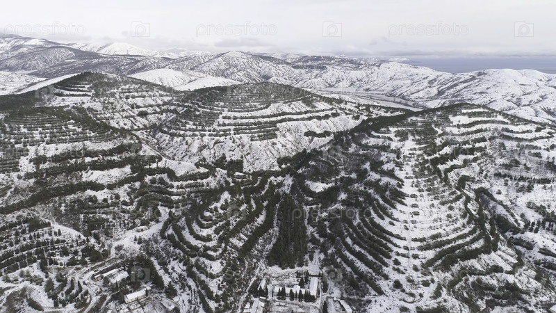 Вид на город в высокогорье зимой.Снимать.Прекрасный пейзаж