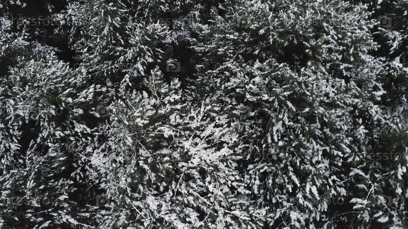Зимний лес в горах с снегом на соснах, рождественский пейзаж