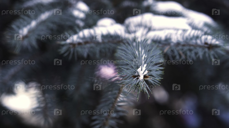 Рождественская елка ветвей в снегу крупный план. еловые ветви, покрытые снегом на ветру в парке, близкий план. рождественские деревья ветви, покрытые естественным снегопадом пихты, зимний фон