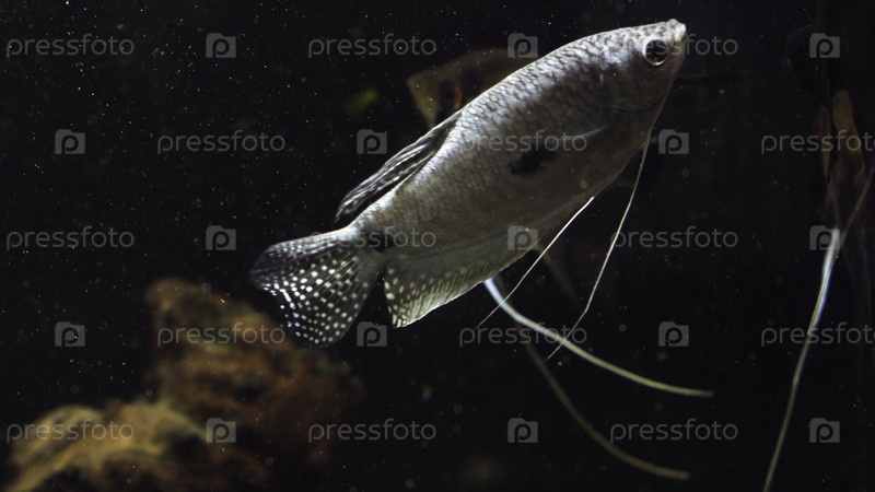 Красивый аквариум натюрморта с плавающей вишневой рыбой. Тропическая поверхность пресноводного резервуара на светлом фоне