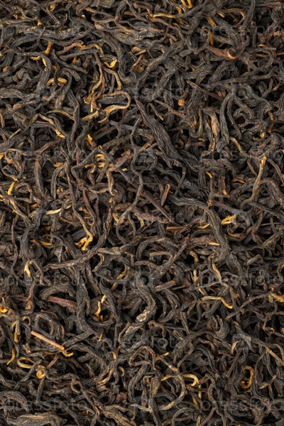 Клубовое фото, на котором показаны ароматные свободные листья черного чая, идеально подходит для заваривания удивительно благоухающего чая