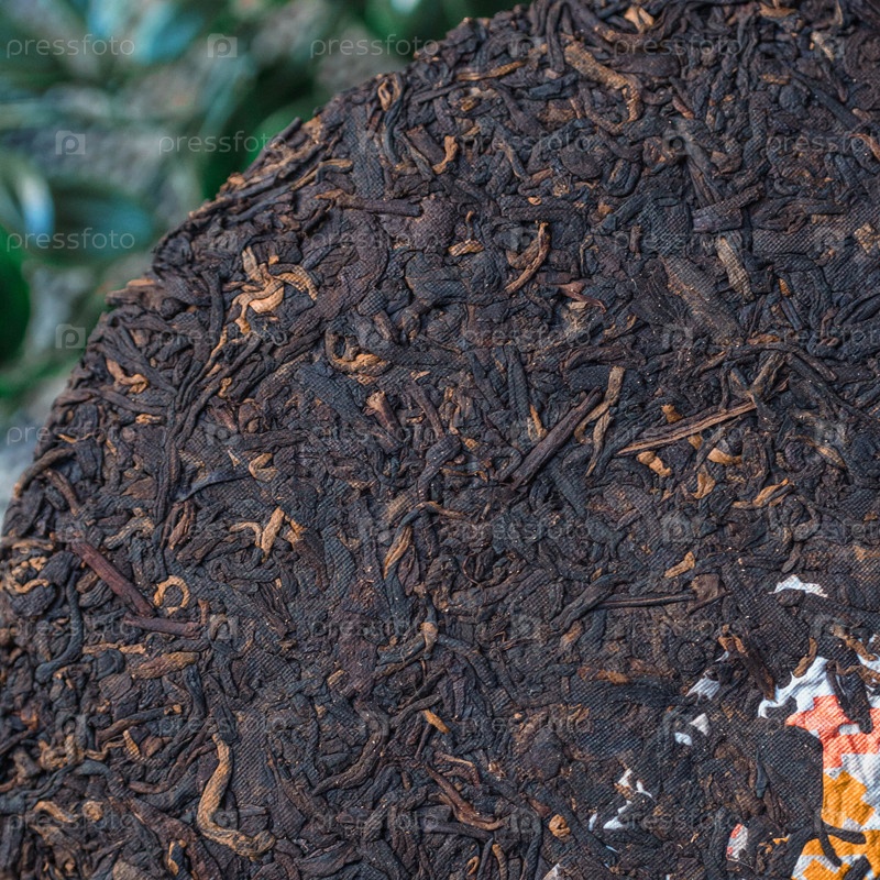 Детальное закрытие сушеных чайных листьев, выложенных на твердой поверхности для наблюдения