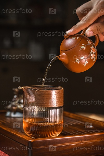 Умелый и элегантный чай, пьющийся в красиво украшенном традиционном чайнике для удовольствия