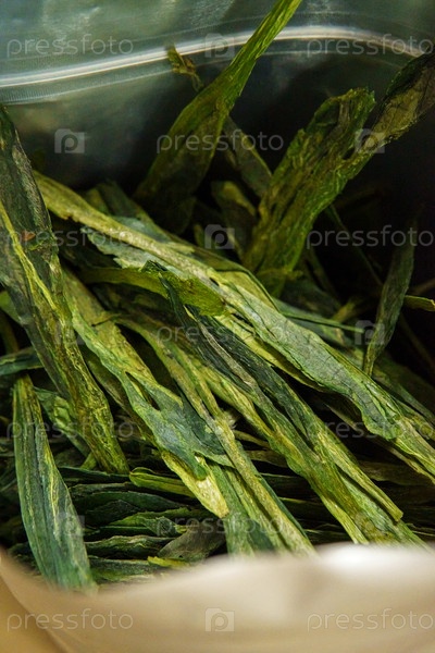 Это крупное изображение фокусируется на высушенных зеленых листовых травах, подчеркивая их уникальную текстуру и форму
