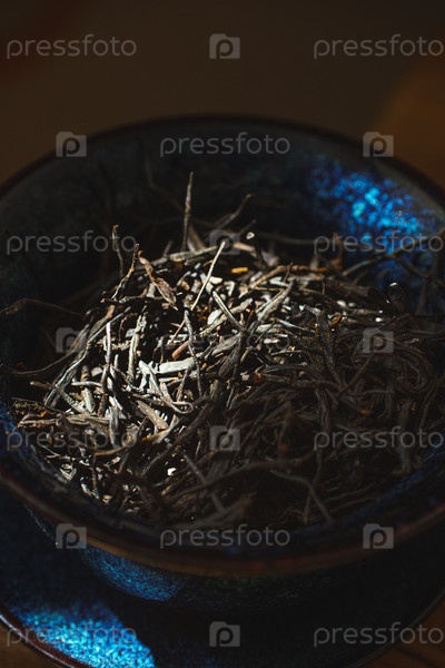 Сухие ветви в очаровательной голубой миске, подчеркивая сложные текстуры и земную элегантность