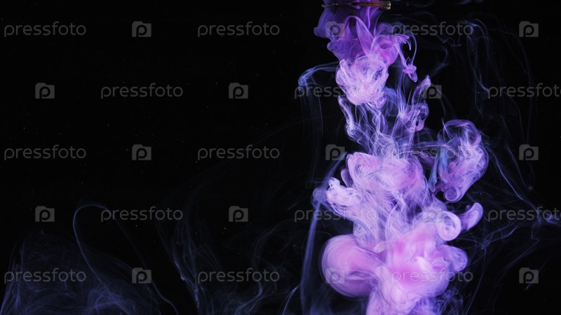Нежный поток краски в воде. Резервные кадры. Близкий план красивого розового чернила, плавающего в воде на чёрном фоне. Медленное движение краски в воде