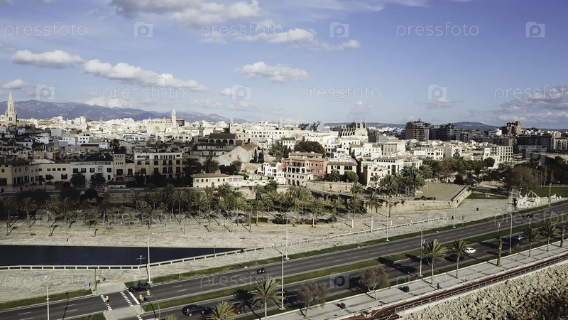 Вид сверху дороги в городе у моря.Сток.Прекрасный вид на дорогу в солнечный летний день