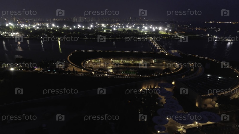 Вид на фонтаны в одном из парков Сингапура.Снимать Снимок Сингапурский городской пейзаж ночью и вид Марина-Бэй сверху