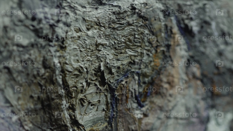 Покройте масляную или акриловую текстуру красочными пятнами. видео. концепция изобразительного искусства, детали живописи с большими узорами кистей