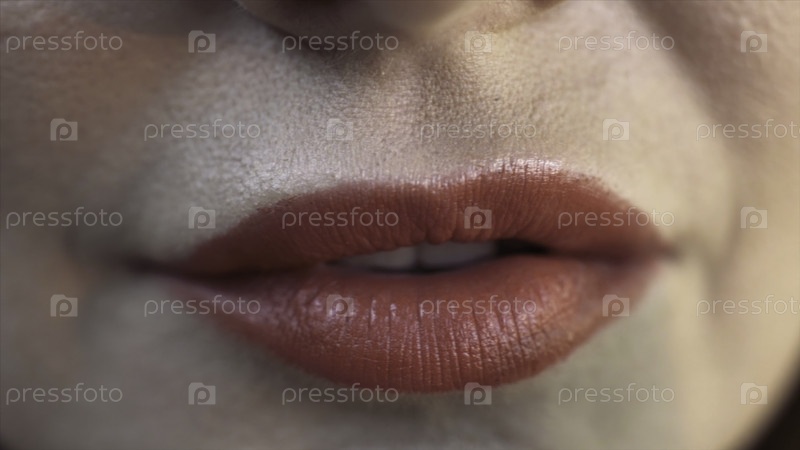 Покрывайте красные сексуальные губы женщины, кусающей зеленую оливку. продолжайте. чувствительные красные губы, экстремальное сжатие деталей лица молодой женщины с красивой кожей