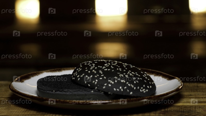 Закройте ряд бутербродов без ингредиентов, лежащих на трех тарелках на фоне темной комнаты - это концепция приготовления пищи