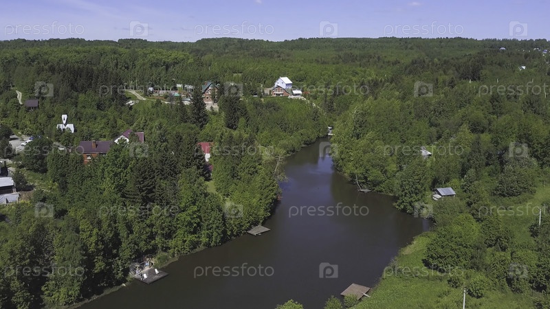 Экологически чистый район с маленькими красивыми домами и узкой рекой