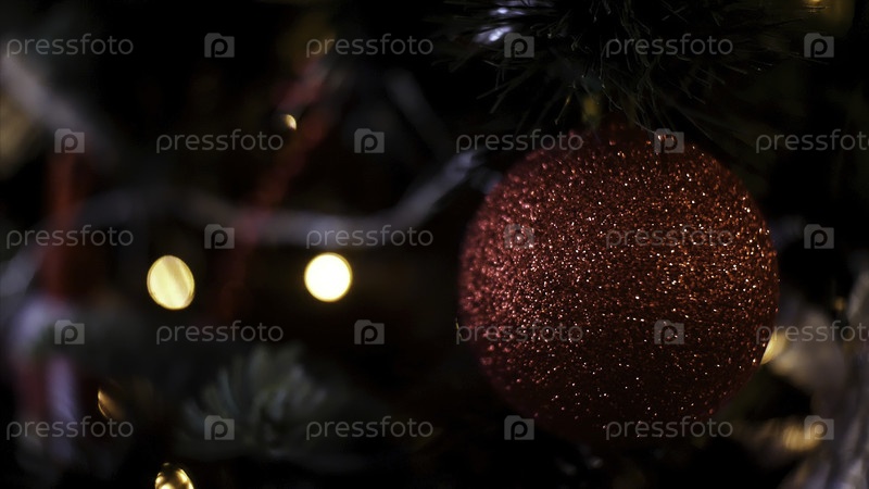 Декорированная рождественская елка на размытом, сверкающем и сказочном фоне, радостное Рождество и счастливая концепция Нового года