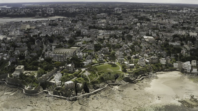 Проветрительный красивый вид на город с большим количеством зелени и прекрасной архитектурой, расположенный недалеко от морского побережья